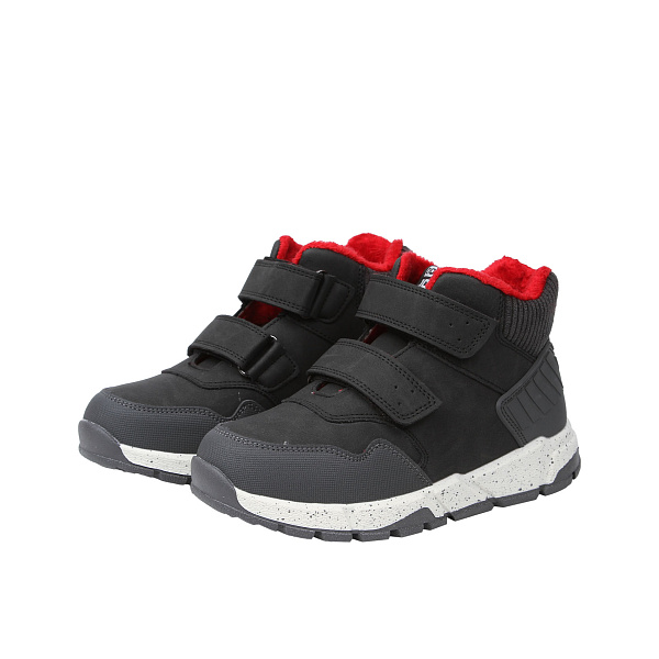 Красивые и модные демисезонные ботинки подойдут мальчикам школьного возраста для выхода в школу, прогулок и активного отдыха на природе. В таких ботинках ребенок будет чувствовать себя комфортно, ноги не устанут, даже если придется провести на улице долгое время. Текстильное покрытие с деталями из искусственной кожи позволяет ноге дышать, не пропускает воду и снег. Утолщенная подошва из термопластичной резины (ТПР) обладает противоскользящими свойствами и равномерно распределяет нагрузку на ноги. Носок полукруглый, не сдавливает пальцы. Фиксируется ботинок двумя широкими застежками на липучках. Цвет – темно-серый, внутренняя поверхность голенища красная.