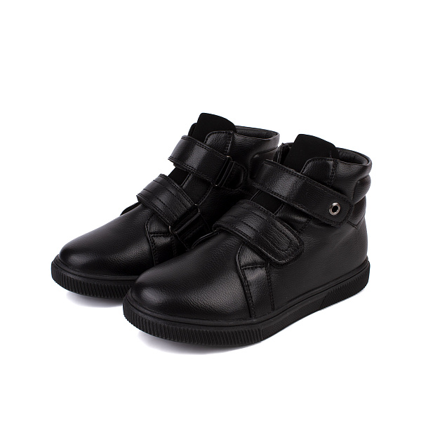 Утепленные черные демисезонные ботинки Tiburon понравятся мальчикам. Верх обуви изготовлен из искусственной кожи, благодаря этому ботинки легко чистить от пыли и загрязнений. Черный немаркий цвет чудесно подойдет как для торжественных выходов, так и для игр на улице. В качестве застежки использованы две липучки, которые плотно фиксируют обувь на ноге и обеспечивают легкость обувания. Толстая рельефная подошва из термопластичной резины (ТПР) не скользит на дорогах, а также равномерно распределяет нагрузку на ноги в процессе носки.