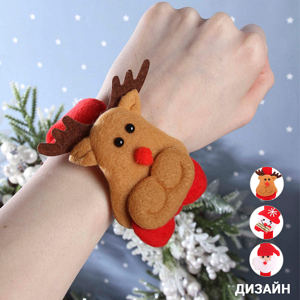 Новогодние браслеты — это яркие и стильные аксессуары, которые помогут легко создать праздничное настроение. Каждый браслет выполнен на основе из прочного пластика, обтянутого мягким текстильным материалом, обеспечивая комфорт при ношении и оригинальный внешний вид. Элементы декора представлены в виде фигурок: оленя, снеговика и Деда Мороза.
