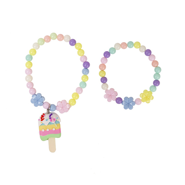 Красочный браслет из пластиковых бусин выполнен в нежной пастельной гамме и дополнен съемной деталью в виде аппетитного мороженого. Такой дизайн будет одобрен каждой маленькой модницей старше трех лет. Украшение органично дополнит яркий летний наряд, а также придаст ребенку индивидуальность и поднимет настроение. Гладкая поверхность деталей не способна травмировать детскую кожу. Материал не содержит токсичных веществ, не выгорает на солнце. Применение декоративных украшений с ранних лет развивает у детей чувство стиля и художественный вкус.