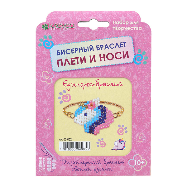 Набор для изготовления браслета из бисера «единорог» — творческий игровой набор, предназначенный для детей 7-14 лет, который позволяет создать дизайнерский браслет с изображением единорога. В набор входят разноцветный бисер, бисерная игла, леска, замки, колечки и подробная инструкция, помогающая освоить технику плетения. Браслет с подвеской станет уникальным украшением или запоминающимся подарком.