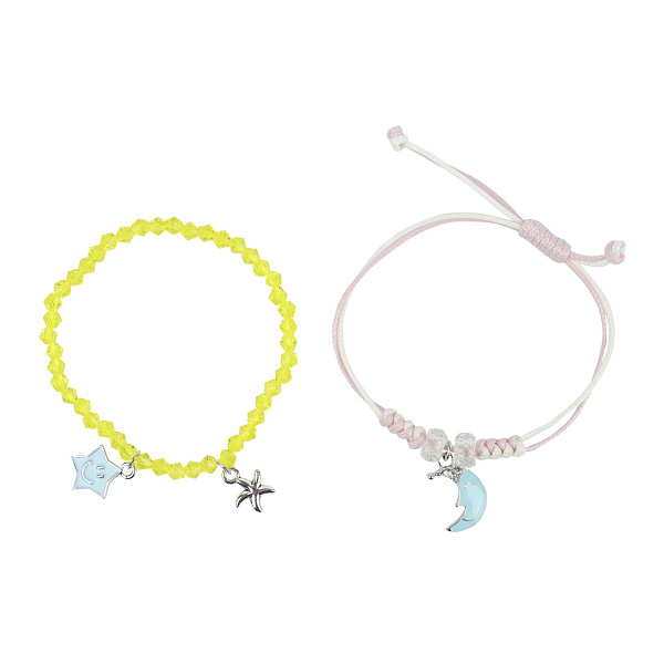 Браслеты веревочные с фигурными подвесками и бусинами 2шт в ассортименте