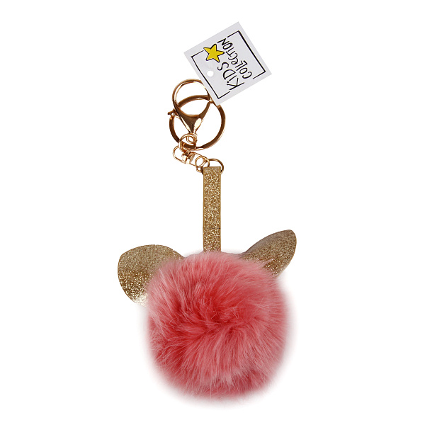 Детский брелок – шарик из искусственного меха розового цвета с ушками. Забавный аксессуар на ножке, покрытой, как и ушки, золотистым напылением. Система изящных замочков крепит к брелоку два колечка. Одно – стандартное, а второе в виде размыкающегося карабина.