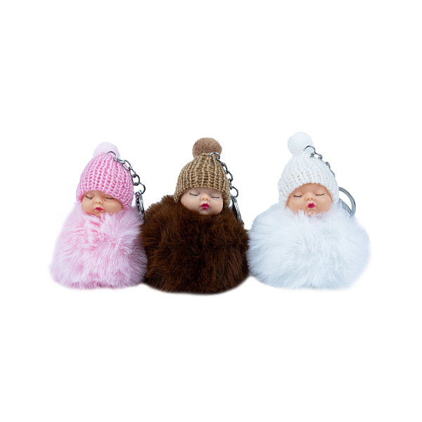Оригинальный меховой брелок в форме пупса в вязаной шапочке так похож на игрушку, поэтому он понравится малышам. Голова пупса изготовлена из полимерного материала и оформлена в виде спящего малыша. К голове прикреплен корпус брелока из мягкого искусственного меха с ворсом средней длины и одета вязаная шапочка в тон. Брелок чудесно смотрится не только на связке ключей, но и в качестве шарма на портфеле или одежде. С помощью такого аксессуара можно будет легко найти кошелек или портфель, если тот потерялся.