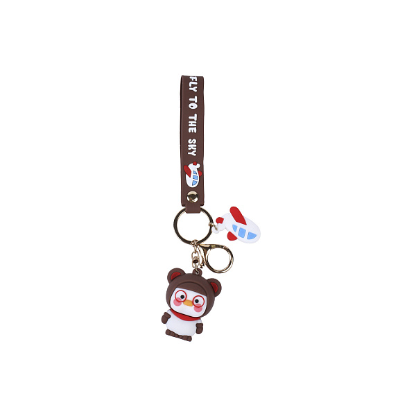 Главным украшением брелока служит фигурка уточки, оформленная весьма необычным образом. Ее дополняет миниатюрный самолетик, кольцо, крепление для ключей, лента с графической надписью. Изделие поднимет настроение, не даст потеряться ключам, послужит в качестве игрушки. Для детей такой брелок может стать отличный крашением сумочки или ранца.