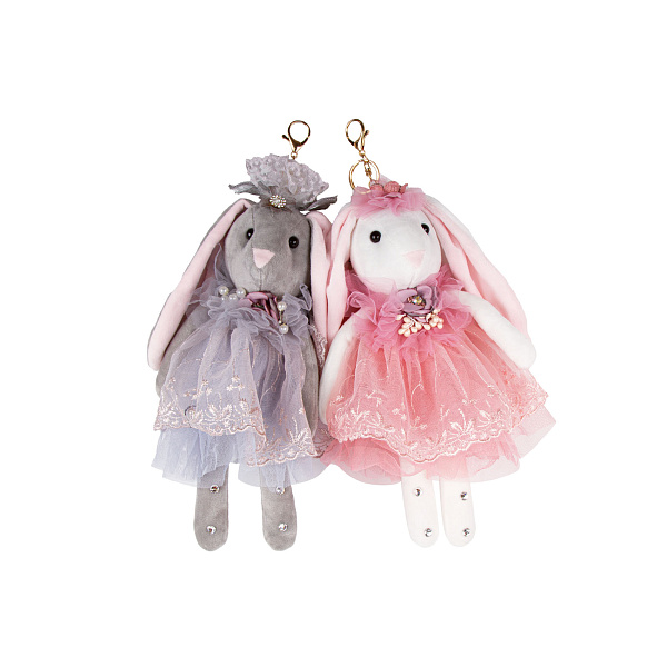 Изящный брелок в виде зайца с длинными ушками в красивом платье понравится каждому малышу. Представлен в розовом и сером цветовом оформлении. Это чудесный выбор для украшения сумки, рюкзака или модного клатча вашего малыша. Фигурка имеет аккуратный пошив с мягким и приятным на ощупь мехом, прострочку. Глазки на брелоке изготовлены из прочного пластика и надежно закреплены на голове, детали не оторвутся даже от активной игры. Милое существо будет радовать ребенка и развивать моторику его рук. Предназначен для детей старше 3 лет.