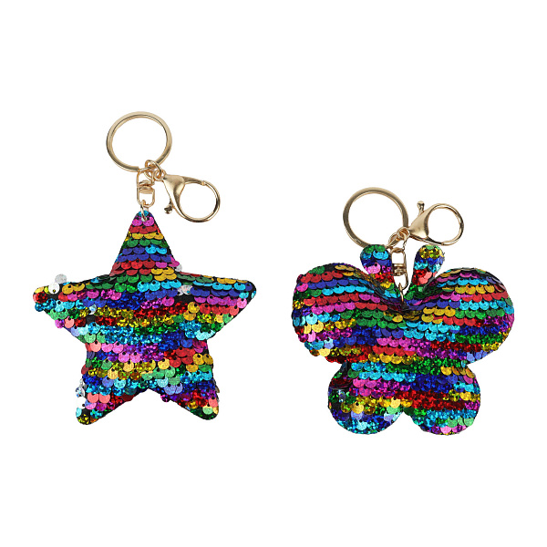 Яркий и красочный брелок в виде звезды или бабочки можно подарить в качестве приятного сувенира друзьям и близким. Изделие обладает необычным оформлением, полностью покрыто переливающимися пайетками. Для крепления имеется металлическая деталь, обеспечивающая надежную фиксацию. От такого аксессуара не откажется ни один ребенок. Для изготовления производитель применяет текстиль и стальной сплав. Изделие обладает повышенным запасом прочности. Использование подобных предметов поднимает детям настроение, помогает формировать художественный вкус, а также дает возможность выделить вещь, чтобы та не потерялась.