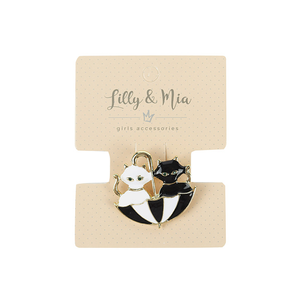 Эта брошь предназначена для девочек, предпочитающих оригинальный и неповторимый стиль в одежде. Украшение «Коты в зонте» подходит для активных, оптимистичных натур, оно подчеркивает озорной и независимый характер владелицы.