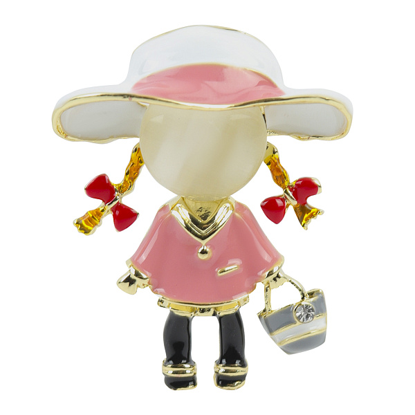Брошь Девочка в шляпе с розовым нарядом в золоте