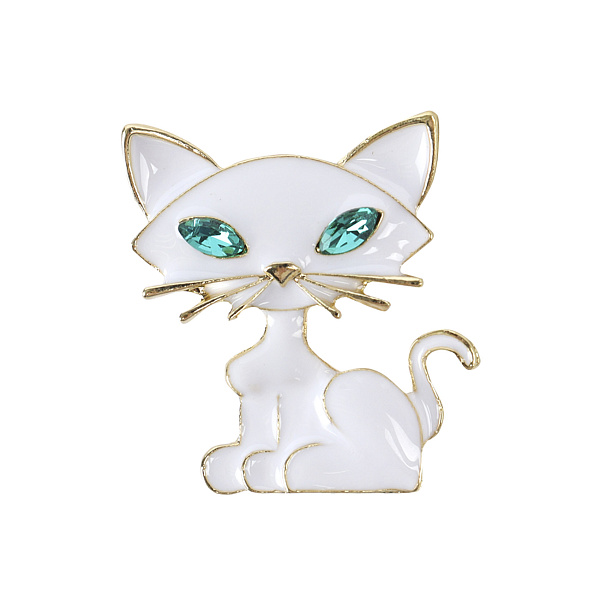 Небольшая декоративная брошь «Кот с изумрудами» выглядит оригинально и станет необычным дополнением образа. Изделие хорошо детализировано. Оно выполнено из металла и покрыто белой эмалью. На месте глаз животного – два блестящих зеленых камня, напоминающих изумруды.