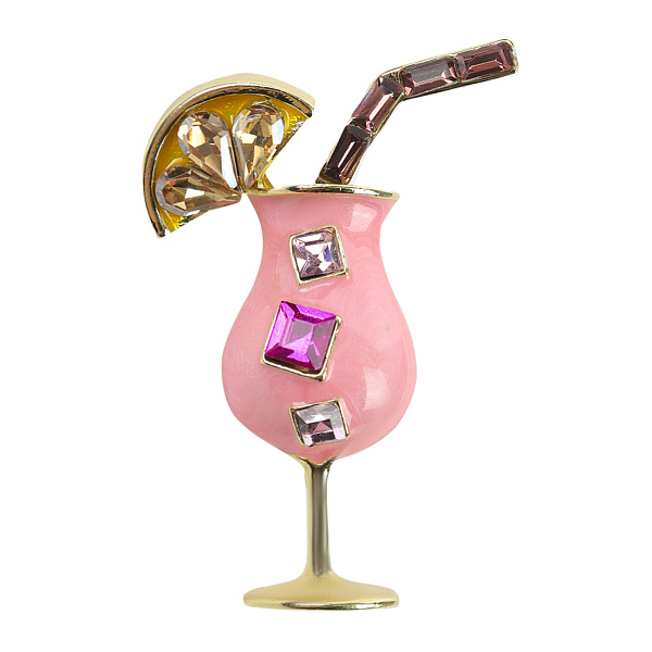 Оригинальная и стильная брошь «Молочный коктейль» станет яркой деталью повседневного и праздничного образа. Изделие выполнено из металла золотистого оттенка. Лицевая часть окрашена розовой эмалированной краской. Стразы, украшающие соломенную трубочку, апельсиновую дольку и стаканчик, делают брошку еще эффектней, красиво переливаясь в свете солнца. К одежде изделие крепится с помощью небольшой булавки.