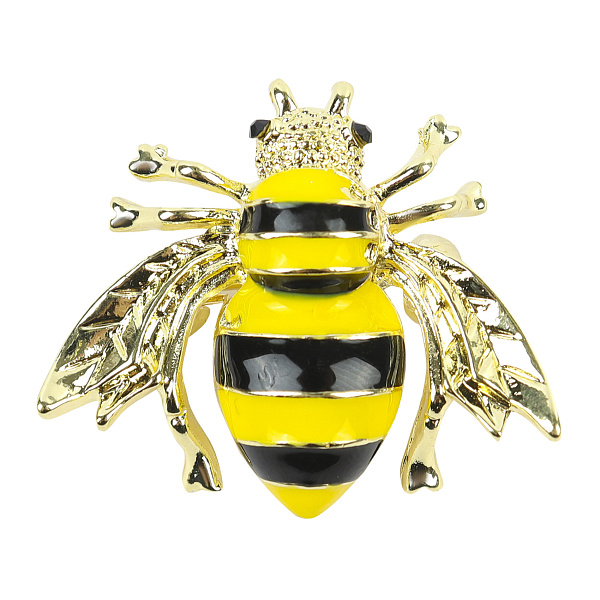 Яркая брошь «Пчелка» станет идеальным дополнением летнего наряда. Она изготовлена из золотистого металла. Полосатое тельце покрыто желтой и черной эмалью. Голова, лапки и крылья хорошо детализированы. Поэтому кажется, что пчела вот-вот улетит с одежды. К ткани крепится с помощью небольшой булавки. Носить изделие можно как с повседневными, так и с праздничными нарядами.