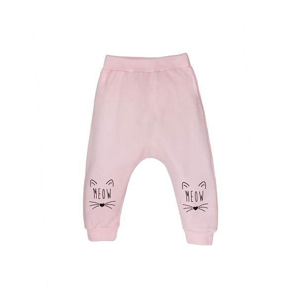 Чудесным дополнением домашнего гардероба малышей станут мягкие штаны из трикотажного полотна. Они имеют широкий пояс и манжеты, привлекают внимание оригинальными рисунками в нижней части штанин. Модель рассчитана на использование подгузника и обладает оригинальным кроем.
