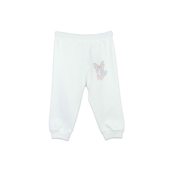 Для повседневной носки, а также в качестве домашнего гардероба ребенку ясельного возраста пригодятся белоснежные штанишки из хлопкового полотна. Материал хорошо пропускает воздух, обеспечивая сухость и комфорт в процессе носки. Модель имеет свободный покрой и не стесняет движений. Низ штанин дополнен эластичными манжетами, они плотно облегают ногу и препятствуют проникновению холодного воздуха. Верх штанов дополнен резинкой, она плотно удерживает изделие на поясе и не давит на живот. Минималистичный дизайн штанов завершают изящные разноцветные бабочки на одной из штанин. Рекомендовано для детей ясельного возраста.