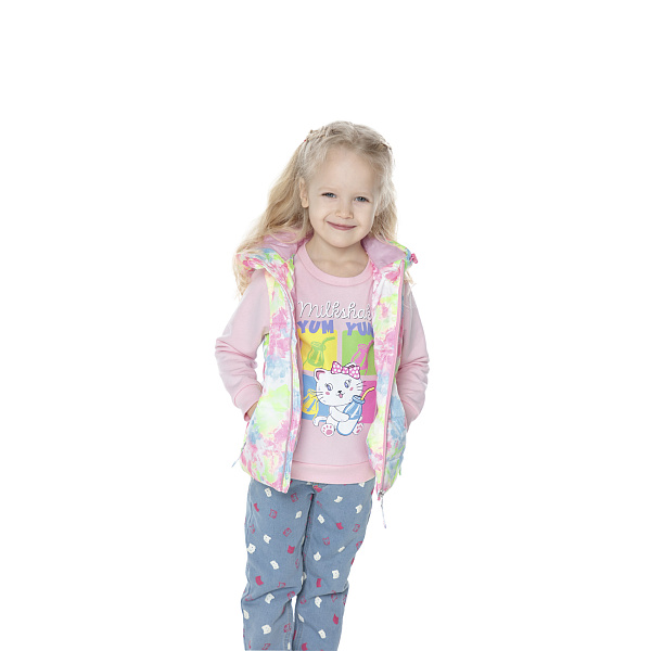 Джинсовые брюки нежного бирюзового оттенка украшены кошачьими мордочками белого и розового цвета. Оригинальное цветовое решение и оформление точно понравится маленькой девочке. Фасон брюк классический, а посадка стандартная. Изделие сшито на ребенка ясельного возраста. Обработка швов и карманов соответствует взрослым моделям джинсов, так что малышки, которые хотят подражать маме и носить такую же одежду будут товно довольны. Пояс представляет собой бархатистую трикотажную полую резинку со шнурком внутри. Это помогает зафиксировать брюки точно по фигуре ребенка с учетом комплекции.