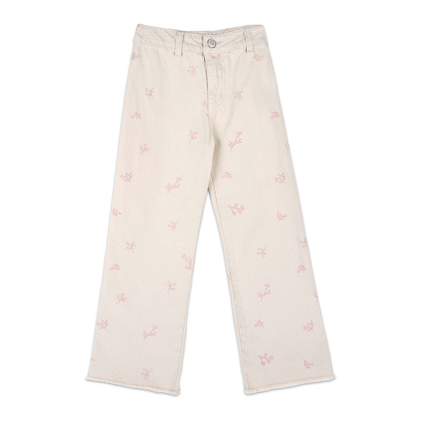 Джинсы выполнены из хлопка, что делает их мягкими и приятными на ощупь. Они представлены в стильном бежевом цвете, который станет универсальной основой для различных детских нарядов. Приятная на вид и на ощупь нежная вышивка в виде небольших цветочных узоров добавляет изделию изысканности и оригинальности.