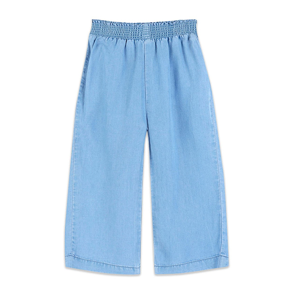Брюки предназначены для носки в теплое время года. Они выполнены в синем цвете и имитируют джинсовую ткань. Штаны сочетаются с джинсовой одеждой, а также изделиями голубого или синего цвета.