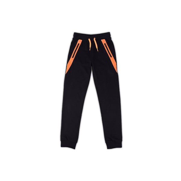 Боковину штанин украшают вместительные карманы на молнии, украшенные оранжевыми полосами. Такие брюки станут завершением как спортивного образа, так и повседневного городского. Рекомендовано для детей дошкольного и школьного возраста.