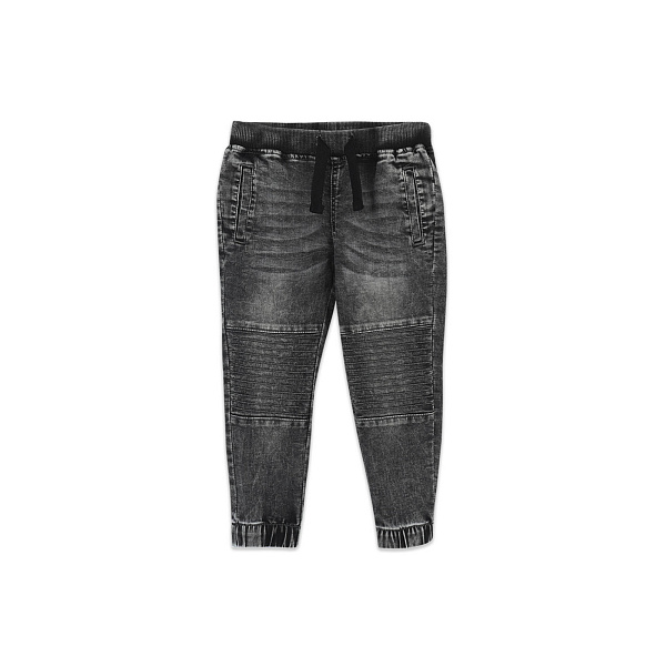 Плотный материал сочетает в себе прочный хлопок и практичный полиэстер. Эластан в составе позволяет ткани растягиваться, делая движения свободными. Резинка со шнурком на поясе позволяет регулировать посадку независимо от комплекции ребенка.
