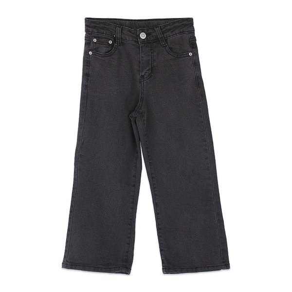 Джинсовые брюки для девочек выполнены в классическом стиле с современным акцентом. Темно-серый цвет придает модели универсальность, позволяя сочетать их с разнообразными верхами и обувью для создания стильных образов. Широкий крой обеспечивает комфорт и свободу движений, подходя для активного образа жизни.