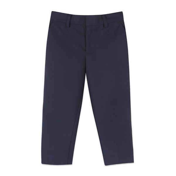 Брюки не сковывают движений и дарят ребенку комфорт. На внутренней части пояса предусмотрены пуговицы эластичная петля для регулирования посадки. Такой вариант будет удобен мальчикам, которые не носят ремень.