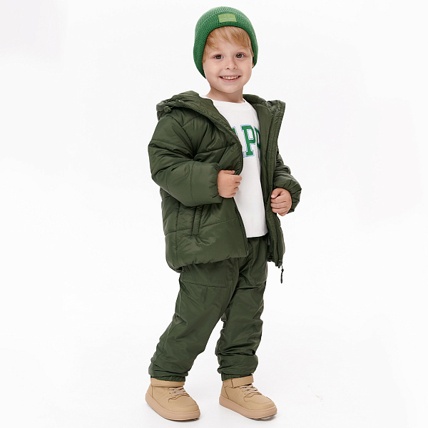 Брюки сочетаются с легкой демисезонной курткой с капюшоном (код товара: 319137).