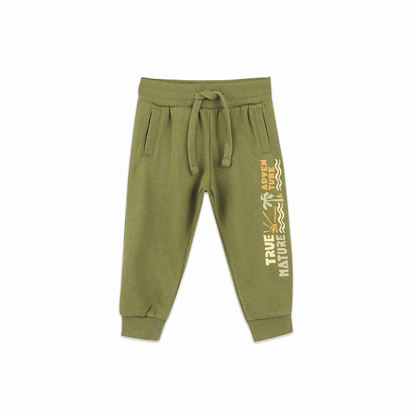 Легкие брюки спортивного кроя станут базовым элементом гардероба маленького мальчика. Они обеспечат комфорт и свободу движений во время активных игр, прогулок и спокойных занятий. Для оформления выбран нейтральный цвет. Украшением служит графический рисунок, расположенный вертикально с одной стороны изделия. Мягкий пояс с резинкой регулируется с помощью шнурка. Два небольших кармана позволят сохранить мелочи, важные для ребенка.