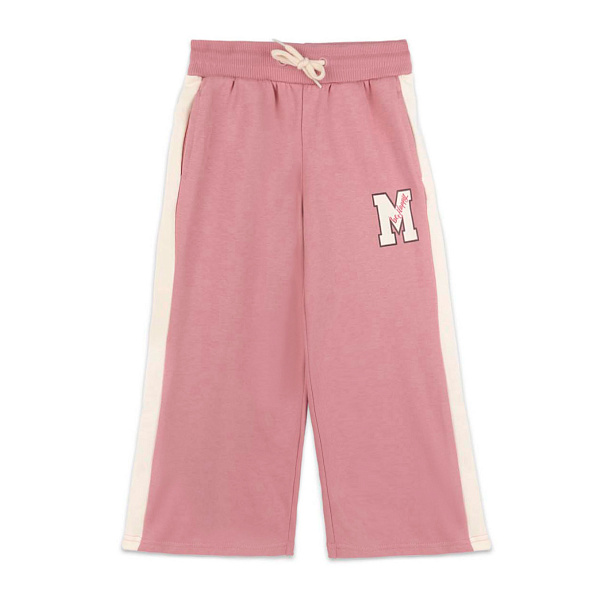 Цвет изделия – розовый, шнурок – белый. На одной штанине изображен логотип изделия. Такие брюки отлично будут смотреться в комплекте с одеждой светлых тонов, они совместимы с повседневной или спортивной обувью.