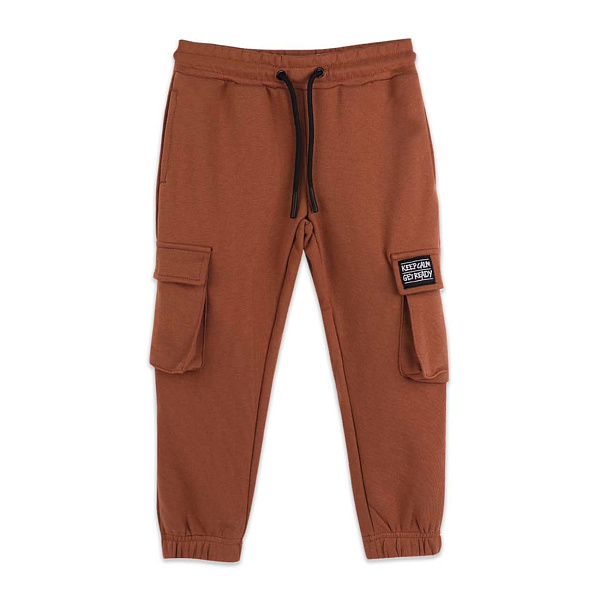 Легкие брюки для мальчиков в универсальном коричневом цвете. Выполнены в спортивном стиле. На поясе и концах штанин вшиты эластичные мягкие резинки. Они не сдавливают тело ребенка и не мешают кровотоку. Отрегулировать размер также можно с помощью шнурков, выполняющих функцию ремешка.