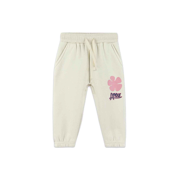 Свободные брюки с манжетами понравятся любой девочке, позволят ей отправиться на прогулку с максимальным комфортом. Модель с поясом на резинке украшена крупным цветком в области колена. Ребенок по достоинству оценит удобную посадку, спортивный крой и практичные карманы. Штаны обеспечат свободу движений, не будут отвлекать от подвижных игр с друзьями.