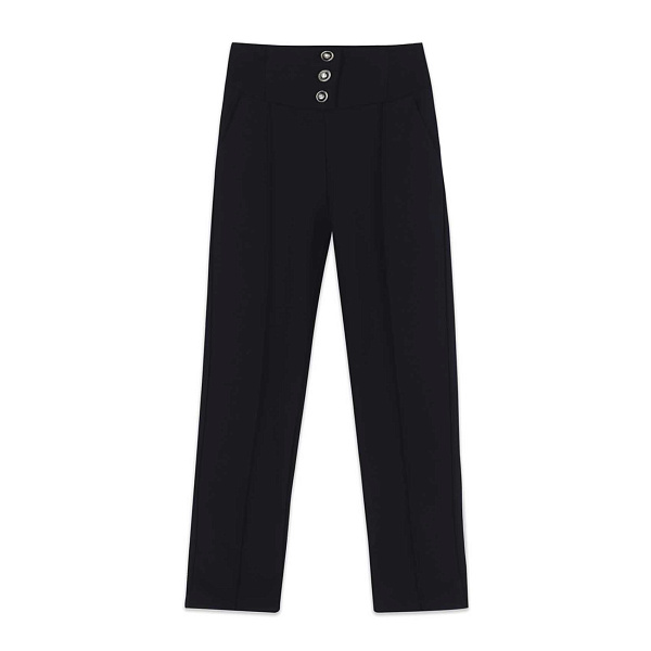 Брюки имеют классический крой с прямыми штанинами, что обеспечивает свободу движений и комфорт в течение всего учебного дня. Широкий пояс на резинке гарантируют удобное прилегание и легкость надевания. Спереди расположены 3 декоративные пуговицы.