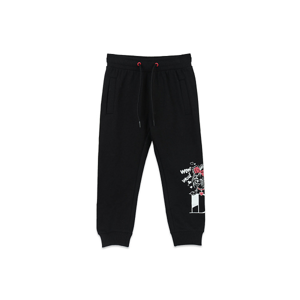 Для того чтобы малыш чувствовал себя комфортно в прохладное время года, в гардеробе ребенка непременно должно найтись место для утепленных брюк. Изделие выполнено в свободном спортивном крое, который не сковывает движения и обеспечивает комфортную носку. В основе материал использован натуральный хлопок, изнутри имеется утеплитель из полиэстера. Пояс брюк дополнен эластичной резинкой и вшитой шнуровкой, с помощью которой можно регулировать изделие по ширине. Каждая штанина дополнена снизу эласичным манжетом, который создает плотное прилегание штанин к ноге, защищая ноги от проникновения холода. По бокам есть вместительные карманы, а по низу штанин – принт собачки в белой обводке. Рекомендовано для детей дошкольного и школьного возраста.