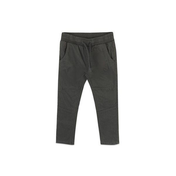 Штанины имеют прямой крой с прострочкой. Карманы - втачные с овальным входом без клапанов. Пояс удерживается на широкой резинке, его можно утягивать шнуром в кулиске. Цвет штанов - темно-серый, он хорошо сочетается как с классической, так и спортивной одеждой. Такие брюки не только удобны, но и практичны.