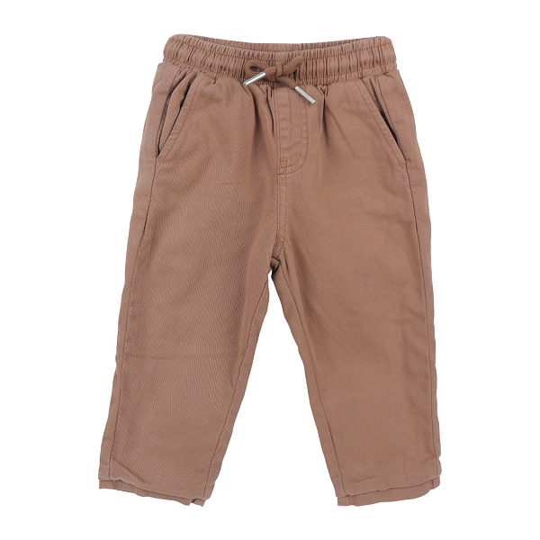 Брюки для мальчиков выполнены из хлопка с добавлением эластана для эластичности и комфортной посадки. Верх изделия состоит из хлопка и эластана, а подкладка — хлопок. Модель коричневого цвета имеет классический дизайн с двумя боковыми карманами и эластичным поясом со шнурком для удобной фиксации.