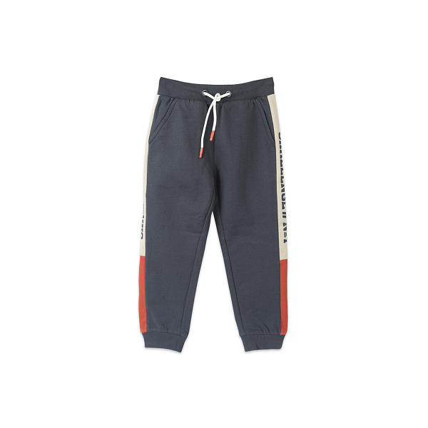 Свободные штаны послужат полезным дополнением сезонного гардероба дошкольника. В них можно посещать детский сад, отправиться на прогулку с родителями в холодную погоду. Свободный крой не ограничивает движения. Широкий пояс обеспечивает комфортную посадку. При необходимости объем талии несложно скорректировать при помощи шнурка. Манжет в нижней части позволяет приобрести изделие с небольшим запасом. В составе трикотажного полотна с начесом присутствует 60% натурального хлопкового волокна и 40% ПЭ. Добавка искусственной нити повышает устойчивость материала к износу. Модель привлекает внимание контрастными боковыми вставками с графической надписью, будет одобрена маленьким модником