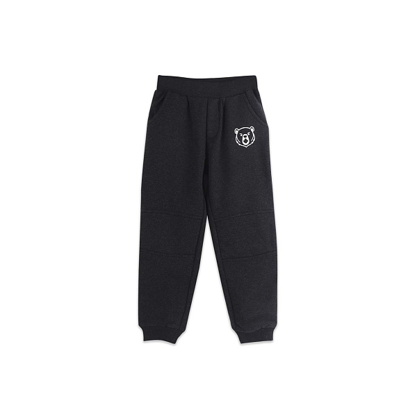 Утепленные спортивные брюки для мальчиков в темно-сером цвете. У модели широкие штанины с мягкой резинкой на концах и поясе. По бокам есть два небольших кармана, куда ребенок может положить носовой платок или другие мелкие вещи. Спереди их украшает белое контрастное изображение головы медведя. Брюки можно носить как часть спортивного стиля на прогулках, в детском саду или в гостях. Они также подойдут для занятий спортом, поездок на природу или дачу.