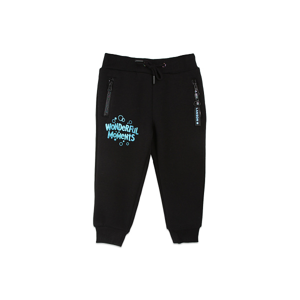 Повседневные штаны предназначены для детей ясельного возраста. Они изготовлены из натурального трикотажного полотна на основе хлопка и полиэстера. Модель хорошо облегает фигуру, не топорщится, утеплена изнутри, поэтому подойдет для холодного времени года. Пояс имеет широкую вшитую резинку со шнурками, низ каждой штанины оторочен эластичной манжетой, которая не сдавливает кожу в процессе длительной носки. Лаконичный дизайн в виде небольшой переливающейся термопечати на одной штанине и простой крой делают брюки идеальным вариантом для детского сада.