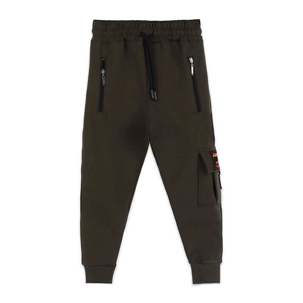 Брюки с накладным карманом и оранжевыми элементами хаки