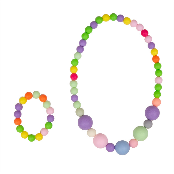 Комплект из разноцветных матовых бус и браслета привлечет девичье внимание и станет одним из любимых в арсенале.