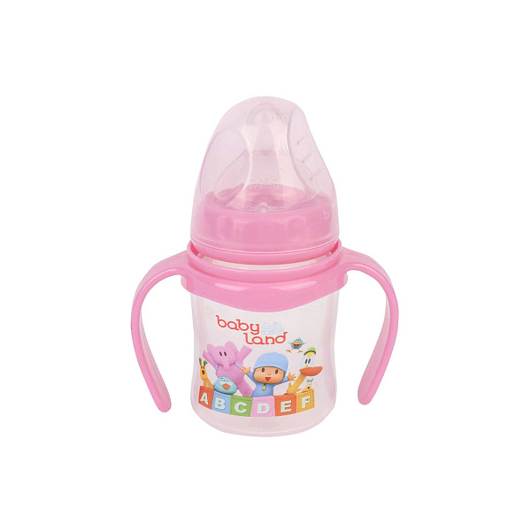 Бутылка babyland с ручками и силиконовой соской розовая 150мл с 0-6мес
