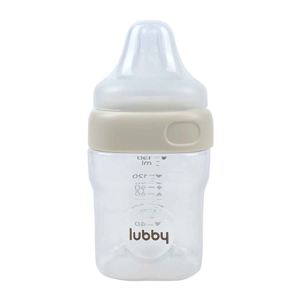 Бутылочка для кормления Lubby — это практичная и безопасная посуда для новорожденных с рождения. Имеет широкое горло, что упрощает наполнение, мытье и добавление смеси. Объем бутылочки — 150 мл, на корпусе нанесена четкая шкала с отметками от 40 до 150 мл, включая шаг в 30 мл, что помогает точно дозировать порцию.