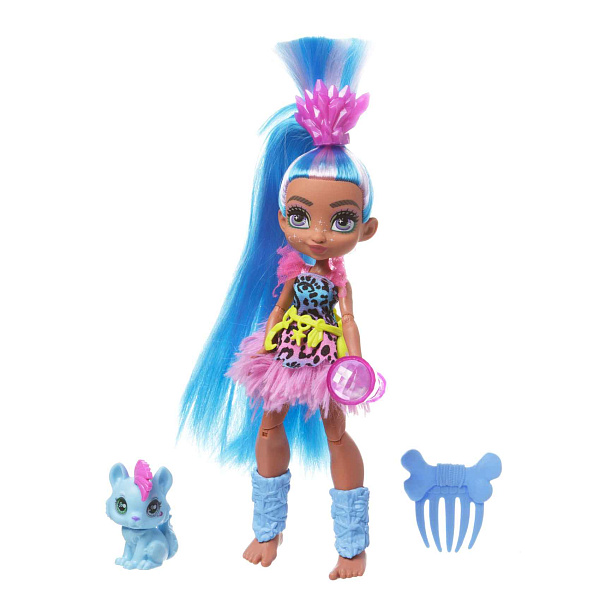 Отправьтесь в увлекательное путешествие во времени с куклой Теллой из «Cave Club»! У нее дикарская прическа и неоновый наряд, а сопровождает пещерную девочку любимый питомец. С помощью волшебного телескопа Телла может видеть будущее, которое она готова принять, несмотря ни на что! За ней повсюду следует волчонок Ханч с ярким ирокезом. Детям понравится сочинять новые истории о доисторических временах. Соберите всех кукол Cave Club, чтобы разыгрывать увлекательные сюжеты с командой пещерных друзей.