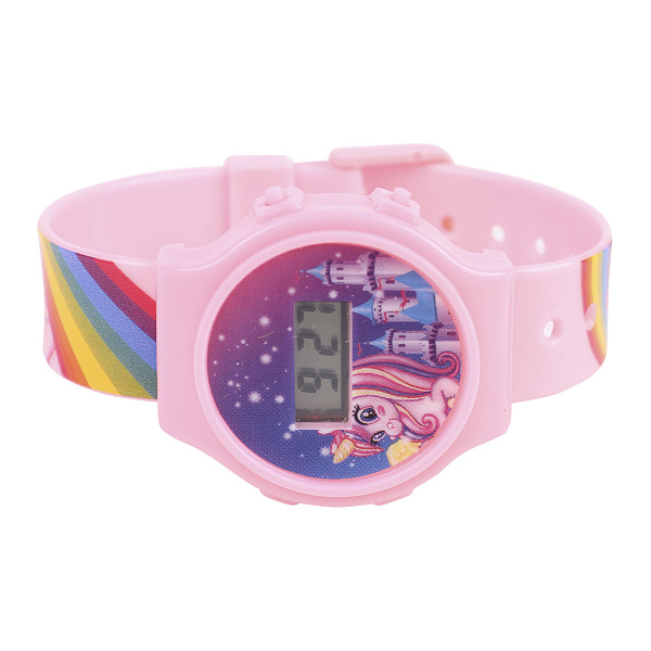 Электронные часы «Милая Пони» станут прекрасным аксессуаром для юных модниц. Они выполнены в ярком розовом цвете, который обязательно привлечет внимание и станет отличным дополнением к любому наряду. Циферблат часов украшает изображение милой пони, что создает атмосферу волшебства и сказки.