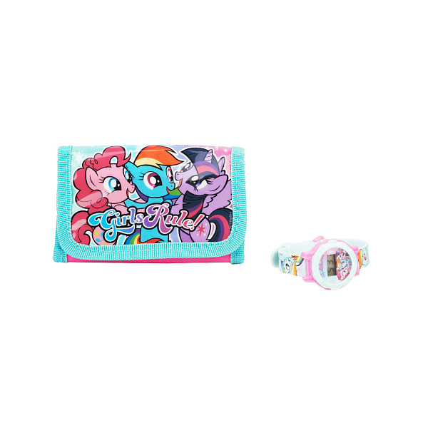 Юным модницам с 3 лет и старше придется по душе оригинальный подарочный набор My Little Pony. В него входят аккуратные электронные часики с тематическим оформлением и стильный кошелек из ПВХ с текстильной окантовкой. Часы работают от батарейки LR41, которой хватает на длительный период. Корпус и ремешок устройства изготовлены из прочного пластика, хорошо переносящего механические нагрузки. Дисплей защищен прозрачным пластиковым стеклом, протирать которое необходимо мягкой салфеткой. Использование подобных аксессуаров позволяет с ранних лет приучить ребенка к аккуратности, привить ему чувство стиля.