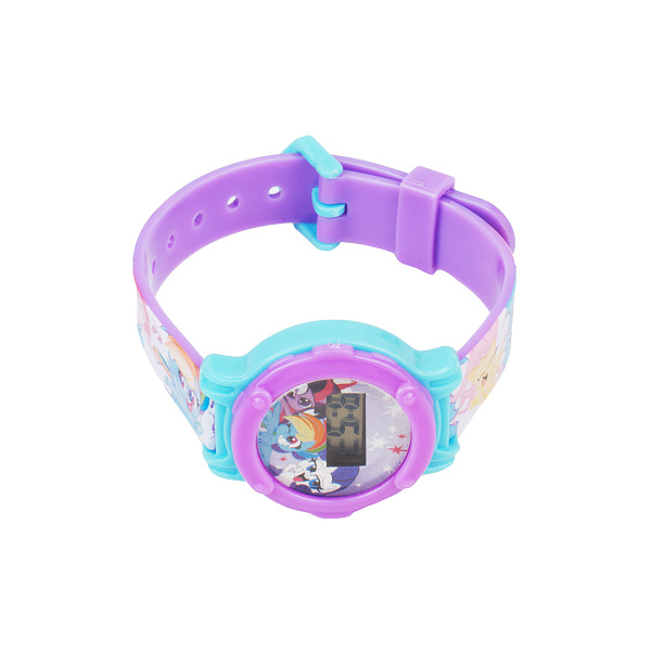 Компактные часы с круглым циферблатом порадуют каждую девочку тематическим дизайном. Устройство предназначено для маленьких модниц старше 3 лет, имеет регулируемый ремешок с изображениями волшебных пони из волшебного мультсериала. Такой подарок порадует ребенка, поможет быстро освоить время и календарь. Источником питания является сменная батарейка LR41. Кнопка переключения намеренно утоплена в боковую часть корпуса, чтобы настройки не сбивались. В производстве использована прочная пластмасса, устойчивая к внешнему воздействию.