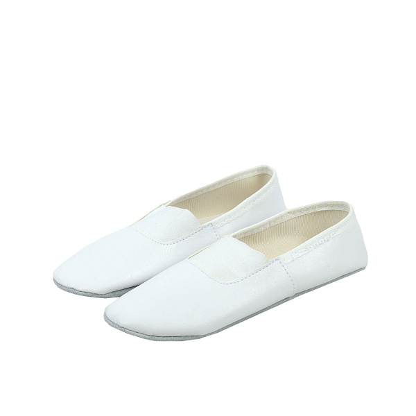 Порадуйте маленьких спортсменов эластичными чешками белого цвета. Спортивная обувь изготовлена из искусственной кожи – материал приятный на ощупь, эластичный и не склонный к появлению царапин. Текстильная стелька и подкладка обеспечат комфорт ногам во время занятий физкультурой, гимнастикой или акробатикой. Передняя сторона дополнена широкой резинкой, которая облегчит обувание. Подошва чешек эластичная, не мешает движениям стоп.