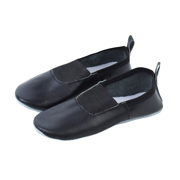 Черный чешки сделаны из натуральной кожи. Внешний вид простой и аккуратный, подходит для мальчика и девочки. Кожа гладкая и мягкая на ощупь. Модель гибкая. Она подходит для занятий танцами или зарядкой. Нога фиксируется благодаря эластичной вставке сверху. Подошва тонкая и гибкая. Текстильная стелька впитывает влагу. Чешки легко надеваются.