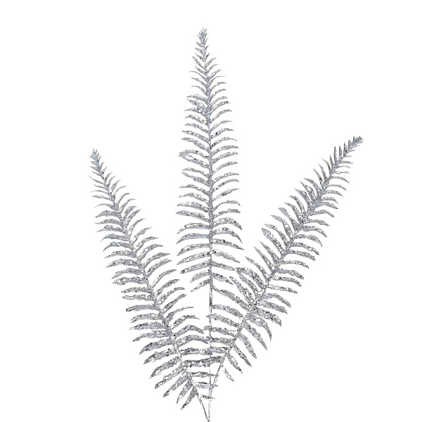 Ветка серебристого папоротника сформирована из 3 элементов, имеющих общее основание. Она поможет украсить жилое или рабочее пространство в процессе подготовки в новогодним праздникам. Эффектный декор органично впишется в любой интерьер независимо от его стилистики, цветовой гаммы и назначения. Украшение не останется незамеченным, заинтересует детей и взрослых. Оно может применяться самостоятельно или в составе сложной композиции.