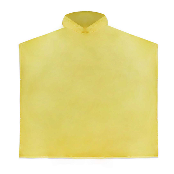 Дождевик выполнен в ярком жёлтом цвете, что делает его заметным и стильным аксессуаром в ненастную погоду. Модель имеет свободный покрой в виде накидки с капюшоном, обеспечивающим дополнительную защиту от дождя и ветра. Удобные боковые кнопки позволяют регулировать посадку и обеспечивают комфорт при носке. Компактно складывается и хранится в чехле на шнурке, что облегчает переноску и хранение.