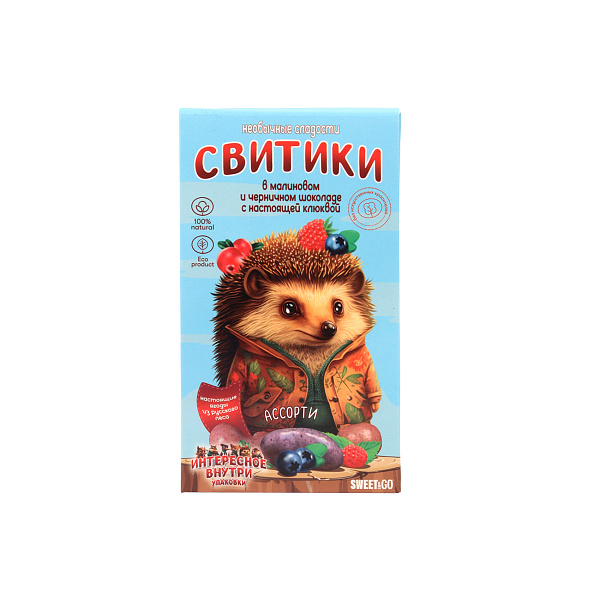 Ассорти драже «Свитики» с клюквой в малиновом и черничном шоколаде – это питательное и полезное лакомство для детей и взрослых. Продукт полностью натуральный. В его составе отсутствуют красители, усилители вкуса и сахарозаменители. Ягоды вяленой клюквы покрыты глазурью из белого шоколада с добавлением сублимированной малины или черники. Сочетание вкусов понравится и малышам, и взрослым.